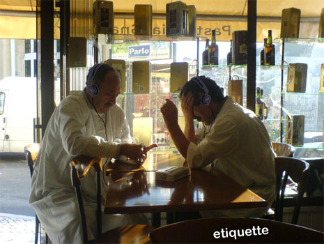 Silvia: The next piece is called Etiquette and it’s something we wanted to work on a long time ago. It’s a very simple little performance / sound piece for two people only and no audience at all, where the role of the performer and the audience is exchanged between the people who are doing the show, without either of them really realising they’re ‘performing’. There are 2 CD’s, they have headphones, they just follow instructions. It’s going to premiere here at the Shunt Vaults, and it will be here as a semi-permanent installation for a while, so people can come here and do it any Wednesday, Thursday, or Friday evening. It premieres on Valentines day, 14th Feb 2007.