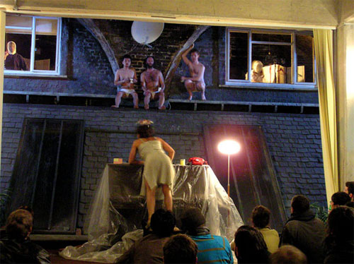 Andrew: In the case of the collective, you don’t take on hierarchical roles so how do you actually go about creating a piece? What’s the Shunt working process, particularly given that your productions seem to be in continual evolution?